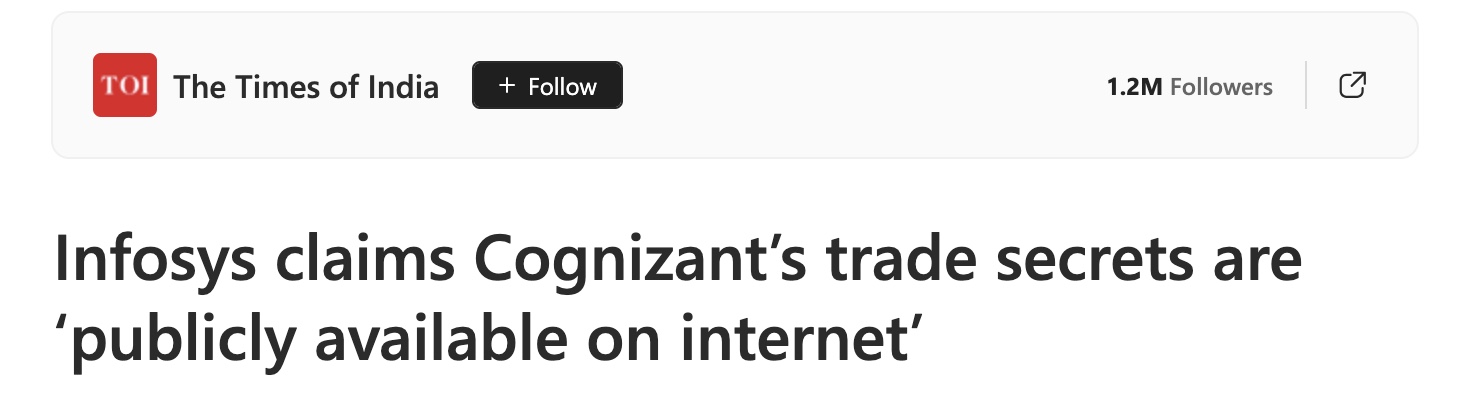 Infosys claims Cognizant’s trade secrets are ‘publicly available on internet’